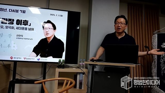지난 7월7일 19시 광주 동구에 위치한 광주청년센터에서 <광장 이후 혐오, 양극화, 세대론을 넘어>라는 주제로 신 교수의 강연이 개최됐다. 신 교수는 우리 주변에 극우가 암약하고 있다면서 정말로 가족이나 가까운 친구들 중에서도 극우 사싱에 빠져 있는 사람이 있을 수도 있다는 점을 환기했다.