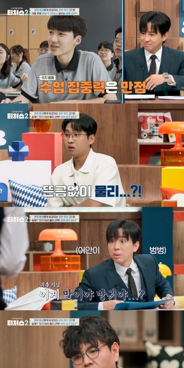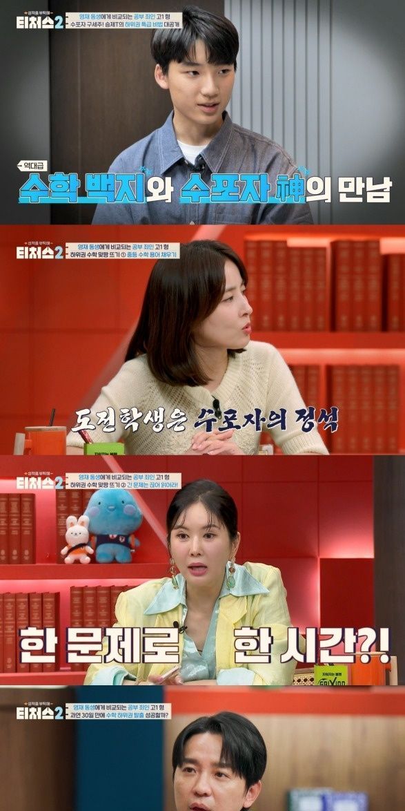 조정식도 “시험지만 봐도 공부를 잘하는 학생일 수가 없다. 문제도 순서대로 풀지 않고 엉망진창이다. 체계적으로 사고하는 능력은 굉장히 중요하다. 어릴 적부터 습관이나 문제가 있었을 가능성이 있다”라며 기본 개념마저도 흔들려 있는 상태를 지적했다.