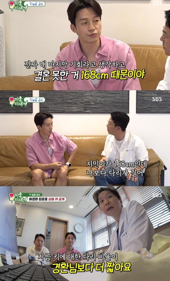 김준호와 허경환이 오랜 콤플렉스였던 '키'에 대한 상담을 위해 정형외과를 찾았다. "진지하게 왔다. 허경환은 "솔직히 키 때문에 나를 고민한 여자들 여럿 있었다. 나 결혼 못 한 데는 168cm인 탓도 있다"라고 밝혔다. 김준호 역시 "지민이가 158cm인데 나보다 다리가 길다. 내 자식까지 그렇게 살게 할 수 없어 상담을 받아볼 거다"라며 의지를 불태웠다.