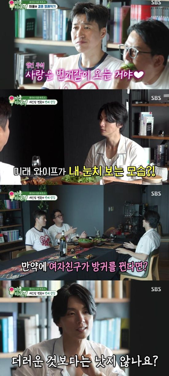 한편 윤시윤은 "지난번에 어머니가 일주일 있겠다고 오셨다가 이틀 만에 가셨다"라고 밝혔고, 김준호는 "너 그러다가 와이프도 간다. 다 간다"라며 지나치게 깔끔 떠는 동생의 모습을 지적했다. 윤시윤은 "제 방귀소리 들어본 사람이 없다. 여자친구가 방귀를 뀌는 건 극복하기 어려울 것 같다"라고 밝혀 눈길을 끌었다.