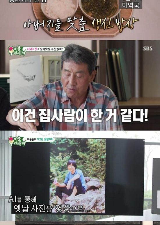 아버지들이 좋아하는 음식으로 개조개 유곽과 원주 손두부 구이를 만든 아들들. 허경환은 "이 요리로 45년을 버티신 것"이라며 어머니가 만든 갈치조림을 공수해 왔고, 김희철 역시 어머니의 오이소박이를 차려 냈다. 입에 익은 아내의 갈치조림을 먹은 경환 父는 "집사람이 한 것 같다"라며 바로 알아차렸고, 경환 母는 감동해 박수를 쳤다.
