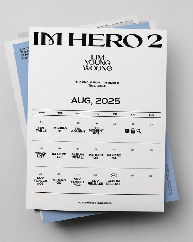 11일 소속사 물고기뮤직에 따르면 임영웅의 공식 채널에 정규 2집 ‘아임 히어로 2’(IM HERO 2)의 타임테이블이 공개됐다. 타임테이블에 따르면 오는 12일 ‘아임 히어로 01’(IM HERO 01)을 시작으로 13일에는 ‘더 모먼트’, 18일에는 트랙리스트, 20일에는 앨범 디테일 등 다양한 콘텐츠가 차례로 공개될 예정이다.