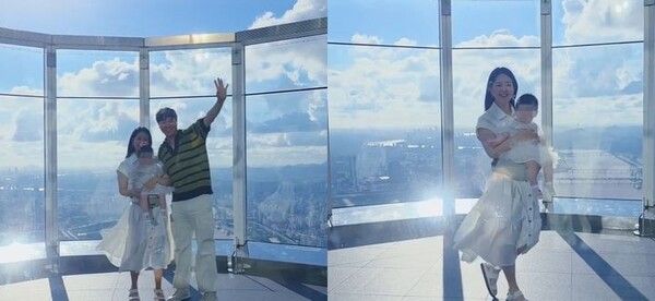 영상 속 박수홍은 도심이 보이는 전망대에서 아내 김다예(32), 딸 재이 양과 환하게 웃었다.
