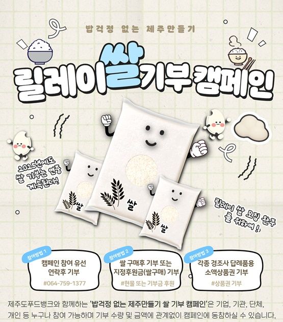 주최 측은 올해 캠페인을 마무리하면서 14일 제주도사회복지협의회 기부식품물류센터 앞마당에서 감사 행사를 연다. 이날 행사에서는 기부자에 대한 감사 인사와 함께 푸드뱅크를 통한 쌀 배분이 이뤄질 예정이다.