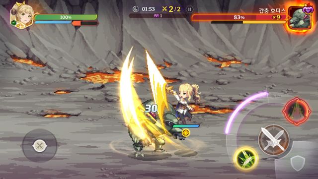회사의 말대로 스토리 컷신은 단순히 대사만 바뀌거나 게임 화면을 짜깁기한 것이 아니라 픽셀 캐릭터의 감정을 표정으로 최대한 살리면서 시점을 이리저리 바꿔가며 애니메이션 효과까지 추가해 만화처럼 풀었다. 캐릭터의 스킬은 전략 게임 '슈퍼로봇대전'처럼 아기자기하면서도 극적인 장면을 완성했다.