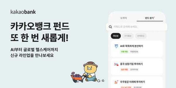 카카오뱅크는 펀드 상품 라인업을 45개로 확대해 새로운 서비스를 선보인다고 11일 밝혔다.