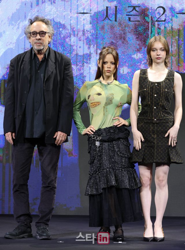 11일 오전 서울 종로구 포시즌스호텔 서울에서는 넷플릭스 ‘웬즈데이 시즌2’ 기자간담회가 진행됐다. 이날 자리에는 팀 버튼 감독, 제나 오르테가, 에마 마이어스가 참석했다.