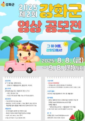 한편, 강화군은 지난 5월 ‘강화의 미래’를 주제로 한 제1회 영상 공모전을 개최해, 10대부터 60대 이상까지 전국 각지에서 총 62건의 작품이 접수되는 등 높은 관심을 받은 바 있다.