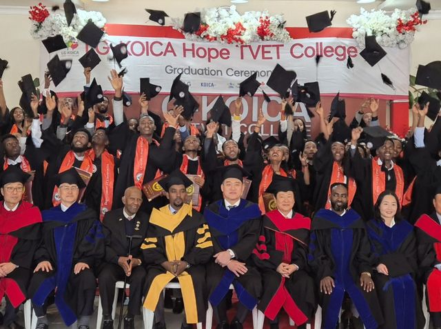 에티오피아 수도 아디스아바바의 LG-KOICA 희망직업훈련학교는 최근 졸업생 70명과 정필원 LG전자 중아지역대표 전무, 정강 주에티오피아 한국대사, 트샬레 베레차 에티오피아 노동기술부 차관 등이 참석한 가운데 제9회 졸업식을 개최했다.