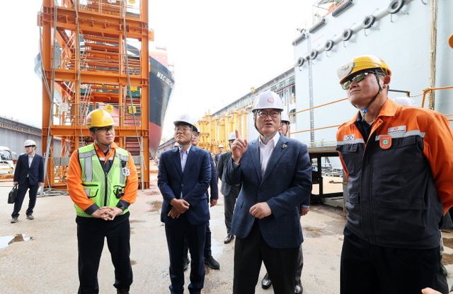 [프라임경제] 우원식 국회의장은 11일 한화오션(042660) 거제조선소를 방문해 상선, 특수선 건조 구역 등 사업장을 직접 살펴봤다.