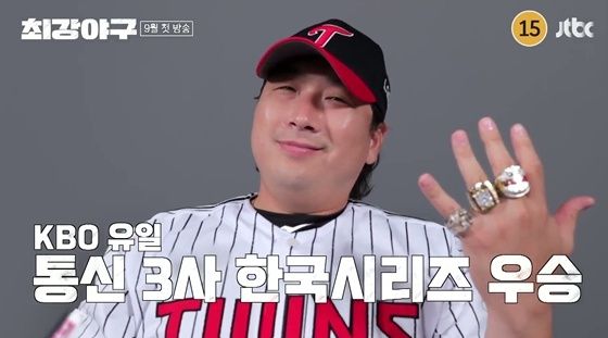 이어 허도환은 의자에 기대 앉아 기세 등등한 표정으로 손에 끼워져 있는 우승반지 3개를 자랑해 시선을 사로잡는다.