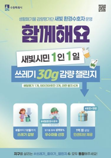 [와이뉴스] 수원시가 8월부터 12월까지 ‘새빛 시민 1인 1일 쓰레기 30g 감량 챌린지’를 전개한다.