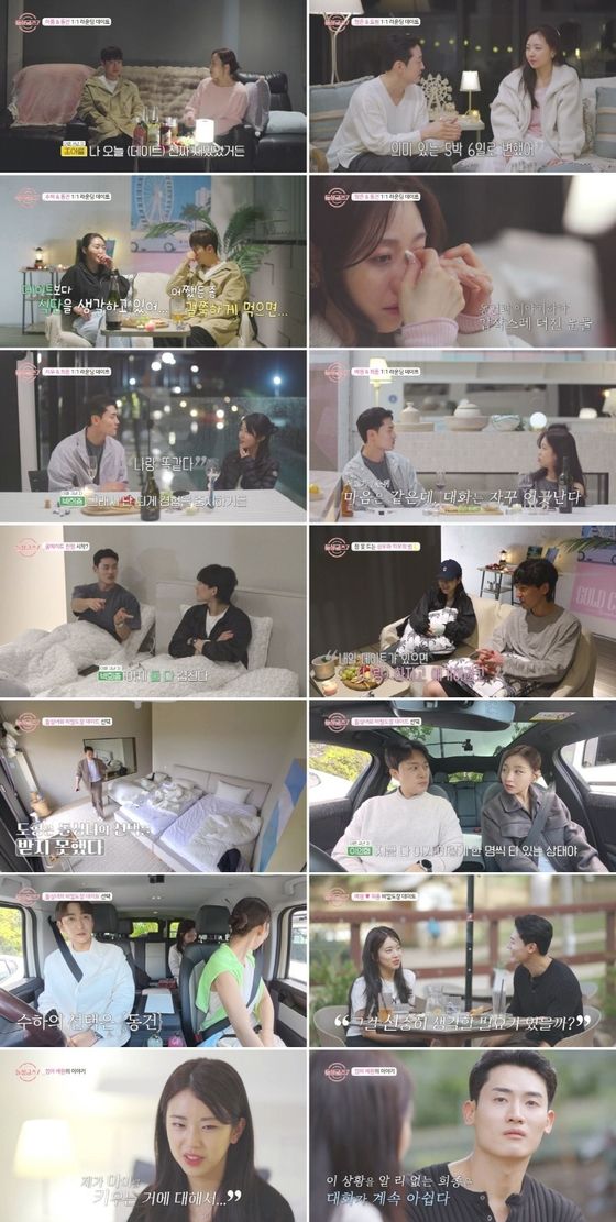 수하는 애타게 기다렸던‘1순위’동건과‘1:1대화’를 했지만,동건이 다음 날 먹을‘메뉴’에 대한 이야기만 나눠 분위기가 어색해졌다.급기야 동건은“오늘은(요리 담당인)나 대신‘수하 이모카세’!”라는 말을 해 수하를 당황케 했다.그럼에도 수하는“난 지금도(동건에게)열심히 플러팅한 것 같다”고 슬쩍 어필했는데,동건은“바보가 아닌 이상(플러팅을)받은 사람은 느낄 것”이라고 제3자에 대해 말하는 듯 해,수하를 한숨짓게 했다.인형은 수하와의‘1:1대화’에서“아까 나와‘랜덤 데이트’를 함께 하면서 호감도가 커졌는지?”라고 자신있게 물었는데,수하는“솔직히 데이트 내내‘방송 분량’을 챙기는 것 같아서 몰입이 깨졌다”고 고백해 인형을 놀라게 했다. ‘급’반성을 하게 된 인형은“분위기를 재밌게 이끌려다 보니 오해하게 만든 것 같다”며 진지하게 사과했다.
