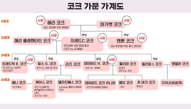 미국 재계 서열 3위의 재벌 가문이자 미국 공화당의 실질적인 지배자로 여겨지는 '코크(Koch)' 가문의 세대교체 행보에 전 세계의 이목이 집중되고 있다. 미국 2위 비상장 기업 '코크 인크(Koch.Inc·이하 코크)'를 통해 쌓은 막대한 재력을 바탕으로 미국 정계에 탄탄한 네트워크를 구축해 온 코크 가문의 영향력과 위상은 미국 현직 대통령 이상으로 평가되고 있다. 이러한 코크 가문의 세대교체는 단순히 미국을 넘어 글로벌 사회에 지각변동을 일으킬 만한 사안으로 평가되고 있다.