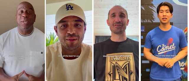 이미 여러 스포츠계 인물이 손흥민의 LA 입성을 축하한 바 있다. 전날(10일) LAFC SNS에는 매직 존슨, 조르조 키엘리니, 카를로스 벨라의 축하 메시지가 게시됐다. 존슨은 LAFC의 공동 구단주다. 키엘리니와 벨라는 LAFC 유니폼을 입고 활약한 바 있다. 심지어 미국 메이저리그(MLB) LA 다저스 내야수 김혜성과 토미 에드먼(한국명 곽현수)도 손흥민의 LA 입성에 환영 인사를 전했다.
