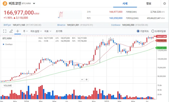 1억 6천 7백만원 찍었음 근데 저게 역프라서 달러기준 환산하면 이미 1억 6천 900넘음 ㄷㄷ