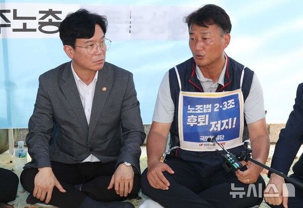 김 장관은 직접 농성장을 방문해 양경수 민주노총 위원장을 만나기도 했다. 양 위원장은 노란봉투법 후퇴에 대한 우려를 전달했고, 김 장관은 "어찌 후퇴가 될 수 있겠느냐"고 답했다. 법이 빠르게 시행되길 바란다고도 덧붙였다.