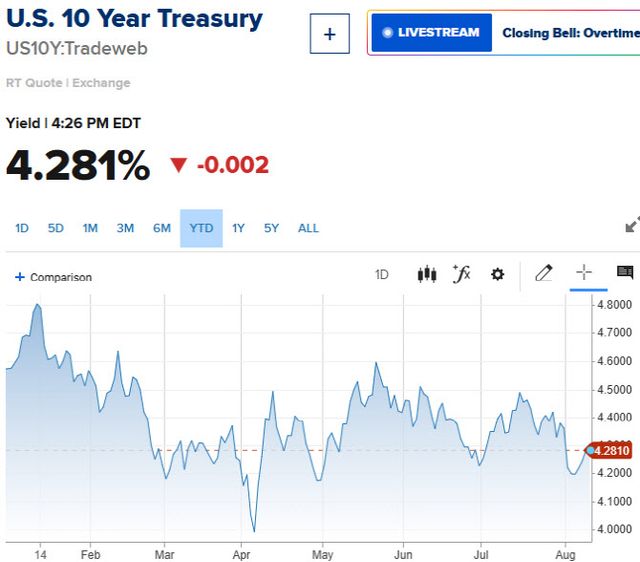 국채금리는 거의 변동 없었다. 오후 4시10분 기준 미 10년물 국채 금리는 4.281%로, 전 거래일 대비 0.4bp(1bp=0.01%포인트) 하락했고, 연준 정책에 민감하게 연동하는 2년물 국채금리는 0.6bp 오른 3.764%에 움직이고 있다.