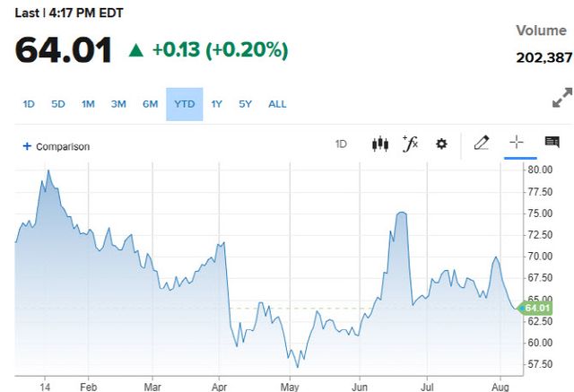 국제유가는 8거래일 만에 소폭 올랐다. 뉴욕상업거래소에서 9월 인도분 서부텍사스산원유(WTI) 선물은 전장 대비 0.08달러(0.13%) 오른 배럴당 63.96달러에 거래를 마감했다. 브렌트유는 0.04달러(0.06%) 오른 66.63달러를 기록했다.
