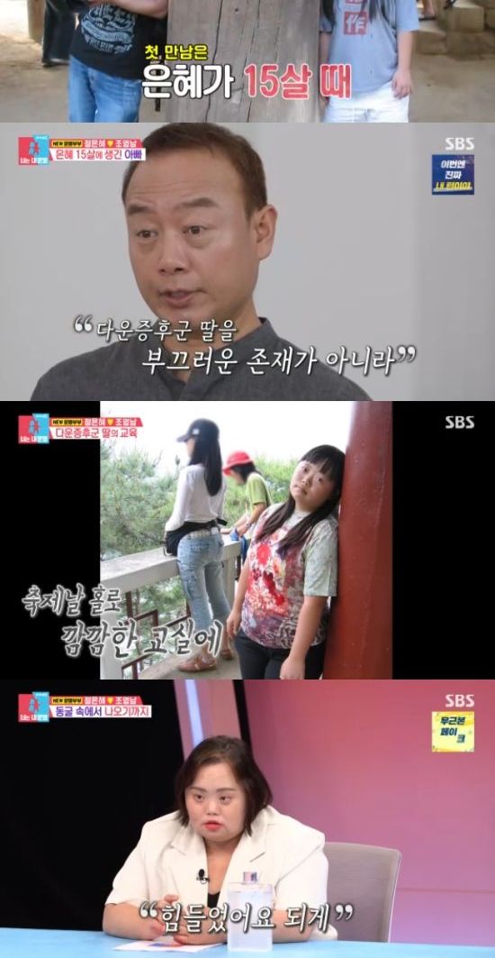그러던 중 7살 연하의 지금의 남편을 만나 재혼을 했다고. 정은혜의 아빠는 "(아내를) 처음 만났을 때 아우라가 보였다. 이 사람이 하는 한마디 한마디가 고귀해보였다. 너무 멋지더라. 다운증후군 딸을 부끄러운 존재가 아니라 되게 당당한 존재로 대하는 모습이 섹시보였다"면서 웃었다.
