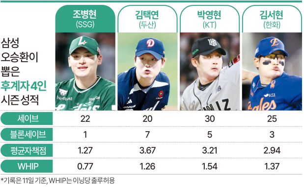 지난 7일 은퇴 기자회견을 가진 '끝판대장' 오승환(43·삼성 라이온즈)은 '제2의 오승환'을 꼽아달라는 질문에 4명을 언급했다. 박영현(22·KT 위즈) 김택연(20·두산 베어스) 김서현(21·한화 이글스), 그리고 조병현(23·SSG 랜더스)이었다.