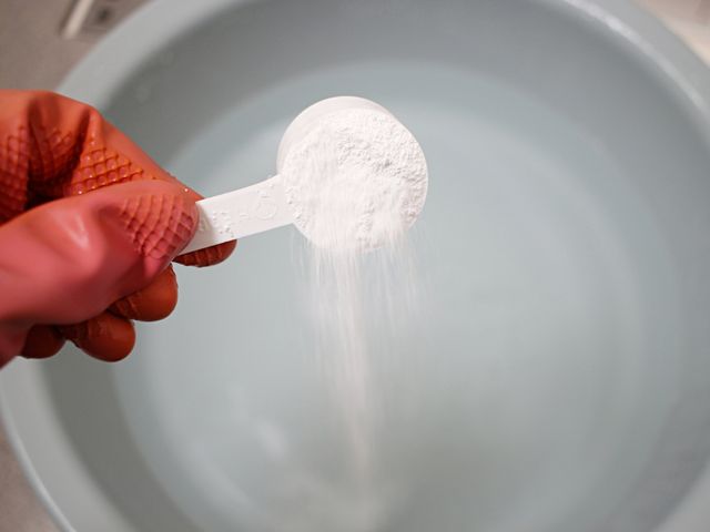 과탄산소다를 1큰술 넉넉하게 넣어요.