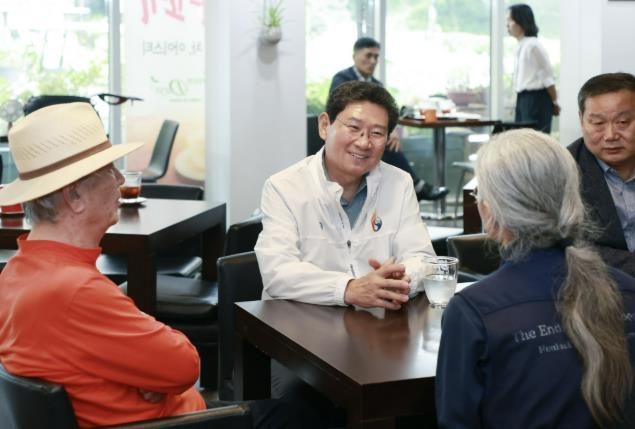 [와이뉴스] 용인특례시이 11일 처인구 백암면에 있는 한택식물원을 방문해 온실 등 시설을 둘러보고, 이택주 원장 등 관계자들과 환담했다.