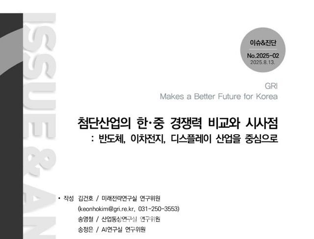 경기연구원은 ‘첨단산업의 한·중 경쟁력 비교와 시사점: 반도체, 이차전지, 디스플레이 산업을 중심으로’ 보고서를 발간하고 기업 경쟁력을 뒷받침하는 산업생태계 조성을 위해 혁신적이고 전략적인 산업정책 추진이 필요하다고 제언했다