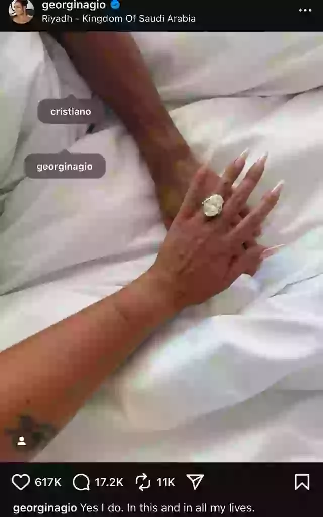 매체에 따르면 조지나는 최근 자신의 소셜 미디어를 통해 호날두와의 약혼 사실을 공개했다. 2016년 첫 만남 이후 9년간 사실혼 관계를 유지해 온 두 사람이 마침내 결혼을 결심한 것이다.