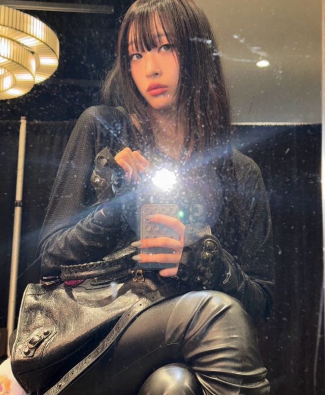 애니는 최근 자신의 사회관계망서비스에 두 장의 셀카를 공개했다. 사진 속 그는 블랙 메시 톱과 가죽 바지, 스터드 장식 장갑, 빈티지 블랙 가방으로 시크한 올블랙 룩을 완성했다.