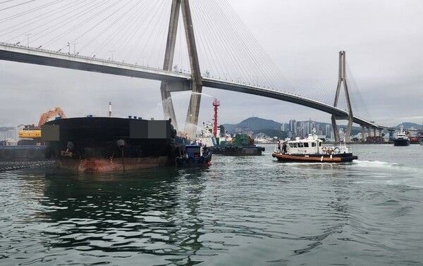 처음 불이 시작됐을 때 인근을 지나던 예인선에서 화재 신고와 동시에 자체 보유한 소화포를 이용해 초기 진화를 지원, 화재 확산을 막았다고 해경은 전했다.