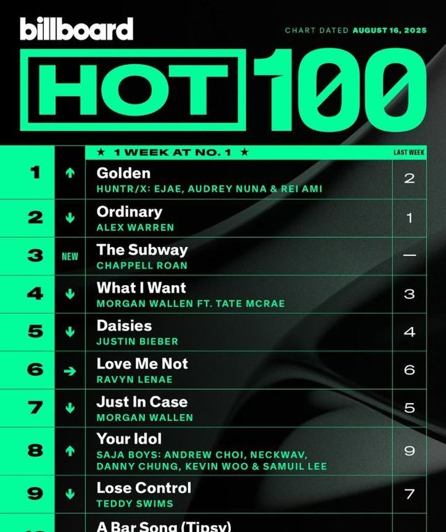 빌보드 차트 예고 기사에 따르면 애니메이션 '케이팝 데몬 헌터스'(이하 케데헌)의 주제곡 'Golden'이 오는 16일자 HOT100 차트에서 1위에 오를 예정이다. 걸그룹 노래가 HOT100 1위를 달성하는 것은 24년 만이다.