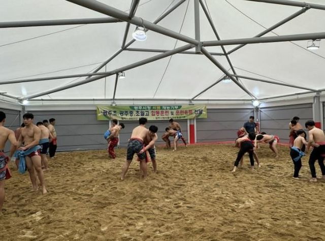 이번 행사는 지난 8일 광주초월생활체육공원 씨름 훈련장에서 진행됐다. 광주초등학교 씨름부 8명, 광주중학교 씨름부 10명, 초월고등학교 씨름부 8명을 비롯해 지도자, 직장운동경기부 씨름팀, 광주시체육회 관계자 등 40여 명이 참가해 훈련장을 가득 메웠다.