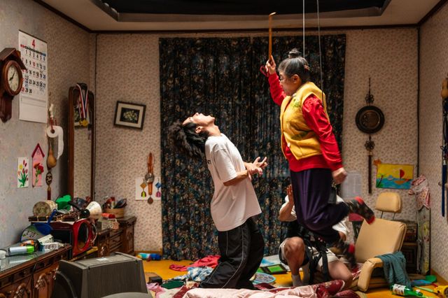 공개된 스틸에는 진지하면서도 화기애애한 촬영 현장과 배우들의 치열한 준비 과정이 생생하게 담겼다. K-좀비물 1인자 전영 안무감독의 디렉션을 집중해서 듣는 정환 역 조정석과 수아 역 최유리, 밤순의 효자손 액션을 위해 와이어에 매달려 리허설 중인 이정은을 통해 장면 하나하나에 진지하게 임하는 배우들의 진정성이 느껴진다.