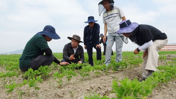 뉴시스 보도에 따르면, 농진청 국립식량과학원 분야별 전문가와 한국들녘경영체중앙연합회 소속 논콩 재배 선도 농업인은 이날 충남·전북 지역 주요 논콩 재배단지 4곳(390㏊)을 찾아 생육 안정과 수확량 확보를 위한 합동 지원 활동을 벌였다.