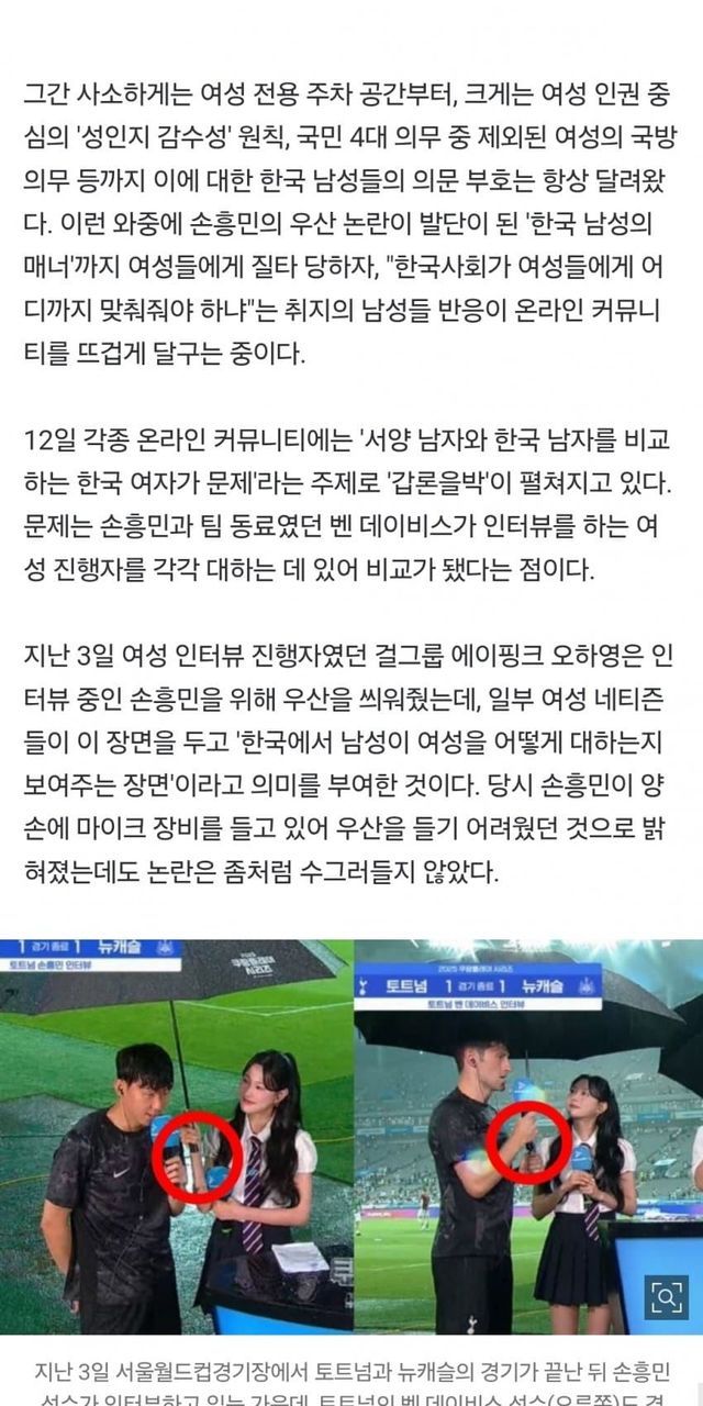 손흥민 '우산논란' 들여다보니... "한국 내 젠더갈등 드러나"