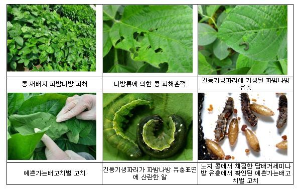 이들 나방류 해충은 콩잎을 갉아 먹고 콩 재배지 주변 고추 재배지나 온실 내로 침입해 피해를 주고 있다. 특히 3령 이상의 유충은 약제 내성과 저항성이 강해 방제가 쉽지 않다.