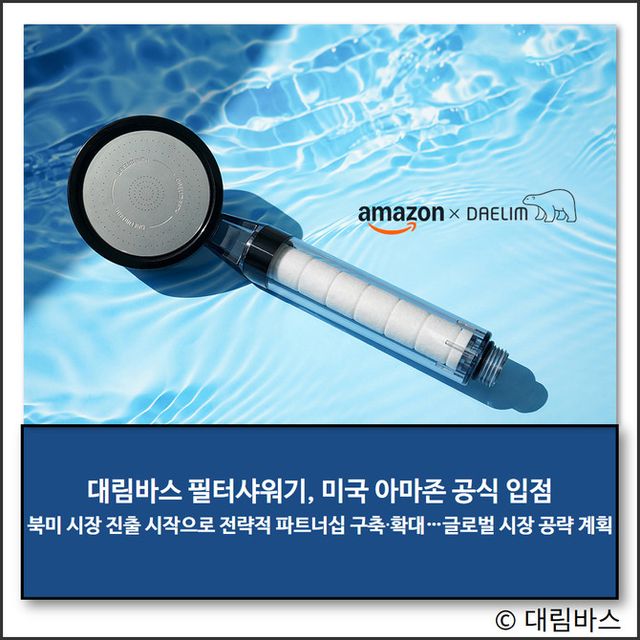 대림바스가 미국 아마존에서 '멀티필터 샤워기' 공식 판매를 시작한다고 12일 밝혔다. 대림바스는 이번 글로벌 전자상거래 플랫폼 입점을 계기로, 국내 소비자들의 위생 및 피부 건강에 대한 높은 관심을 바탕으로 개발된 필터 샤워기를 해외 시장에도 소개하겠다는 방침이다.