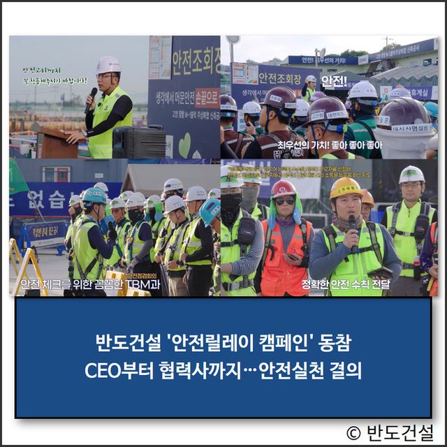 반도건설이 전사적인 안전 실천 결의를 위해 '안전릴레이 캠페인'과 '안전보건행사'를 진행했다.