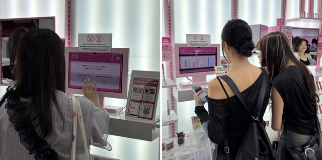 이곳에서는 방문객이 카메라 앞에서 얼굴을 촬영한 뒤 간단한 설문을 작성하면 AI 분석으로 퍼스널컬러를 진단해 준다. 결과는 봄·여름·가을·겨울 4가지 톤으로 구분되고, 각 톤은 다시 라이트·미디움·딥으로 세분된다. 이를 바탕으로 립, 블러셔, 섀도 팔레트 등 어울리는 제품이 추천된다.