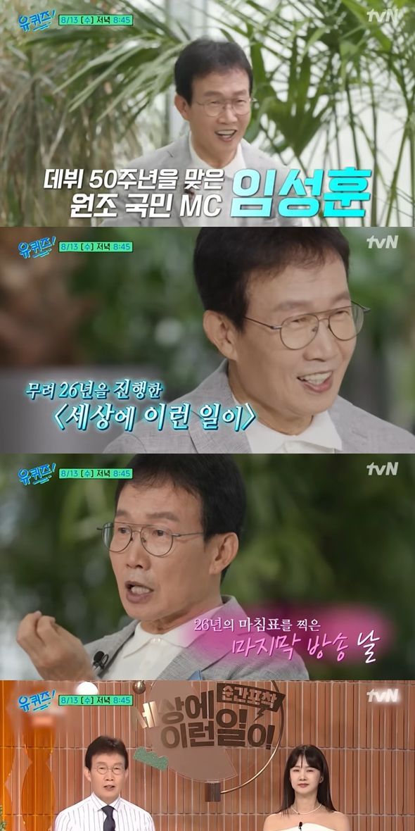 앞서 임성훈은 1998년부터 2024년까지 방송된 SBS '순간포착 세상에 이런 일이'의 첫 회부터 마지막 회차까지, 총 1,279회 동안 메인 MC 자리를 지켰던바.