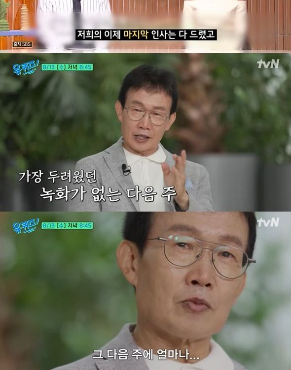 유재석이 마지막 녹화 당시 심정을 묻자 그는 "'이제 마지막 인사를 드리겠습니다' 그래 놓고선 제 말에 제가 딱 걸렸다"며 과거를 회상했고, 이어 실제 방송에서 "저희의 이제 마지막 인사는 다 드렸고"라며 울컥해한 모습이 드러났다.