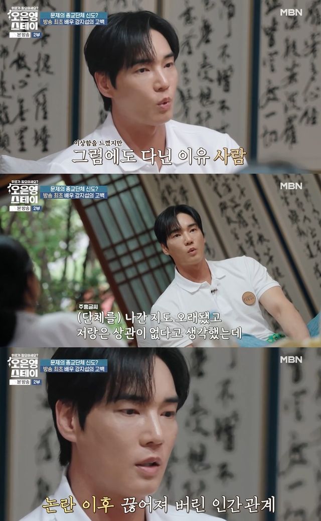 JMS(기독교복음선교회) 신도 의혹에 휩싸였던 배우 강지섭도 2년 만에 방송에 모습을 드러냈다. 그는 과거 JMS 신도였으나 기존 신앙과의 거리감을 느껴 탈교했다고 해명했지만, 그간 방송 활동은 중단해왔다.
