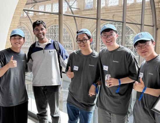 [사진 위] 왼쪽부터 와들 송진태, 오픈AI 심사위원 엔지니어, 와들 한상도, 와들 박지혁 대표, 와들 황태백