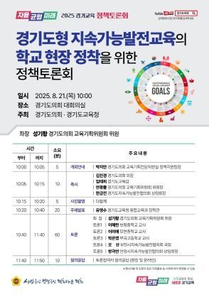 한편, 경기교육정책토론회는 경기도의회와 경기도교육청이 공동으로 주최하며 누구나 사전 신청없이 현장 참석 또는 유튜브 생중계를 통해 참여가능하다.