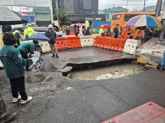 부산도시철도 사상~하단선 구간에서 싱크홀로 주변 통제중