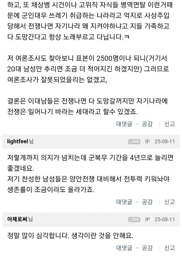 여론조사 꽃 20대 남성 '양안전 파병 찬성 55%'