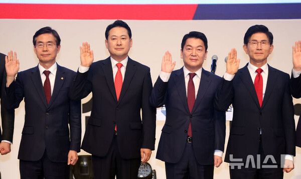 뉴시스 보도에 따르면, 국민의힘은 이날 오후 2시 대전 배재대학교 스포렉스홀에서 제6차 전당대회 충청·호남 합동연설회를 개최한다.