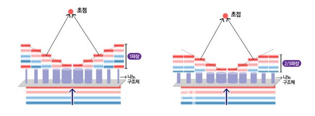 연구팀은 최소 속도 제어량만을 이용해 정확히 빛을 제어하는 새로운 설계 규칙을 시도했다. 기존 한 파장이 아닌 3분의 2파장의 위상 지연만으로도 빛을 효율적으로 회절시킬 수 있는 방법을 세계 최초로 제시한 것이다. 이를 통해 나노 기둥의 높이를 줄이면서도 기존과 동일한 광학 성능을 유지하고, 제작 난이도와 불량률을 낮추며 안정성을 높였다. 결과적으로 수율 향상과 가격 경쟁력 확보가 가능해졌다.