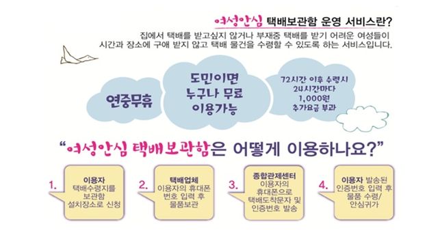 안심 무인택배함은 누구나 무료로 이용 가능하다. 다만 보관 후 72시간이 지나면 하루당 1000원의 보관료가 부과된다.